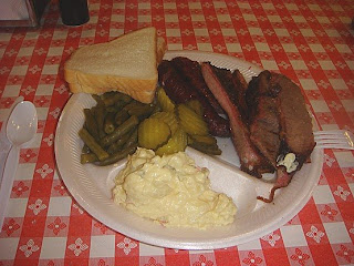 The first bite of my brisket and I knew this was a great joint. Tender with smoke flavor through and through. I was starting to think I didn't get enough brisket, then I tried the ribs. Nope, I needed room for ribs, too, because they were delicious. Tender and smoky with a nice crust. The only problem was they were not hot through. Sort of as they had been sitting off to the side somewhere and not in the pit. Same problem with the hot sausage. It was neither hot in spice or temperature, but very flavorful and the right mix of wet and dry. The tater salad was the best I had this trip. Sweet mayo base with just a hint of mustard. Lockhart and Luling had better look out. Bastrop is on the BBQ map and Cartwright's put them there.
