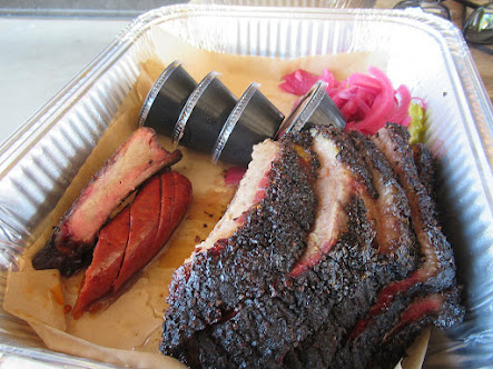 We had a friend in town who wanted some BBQ so we took a trip down to Hurtado in Arlington. The street in front of the restaurant was closed for construction but we found a parking spot nearby and wound our way around the barriers and into the joint. The construction must be impacting their business as there were only two folks in line in front of us. That's too bad, because the food was excellent, as always. The brisket and ribs were perfectly smoked and the stuffed jalapenos were outstanding. The casing on the sausage was a bit chewy and there didn't seem to be much spice in the jalapeno sausage. I grabbed some extra brisket and Texas twinkies to go.